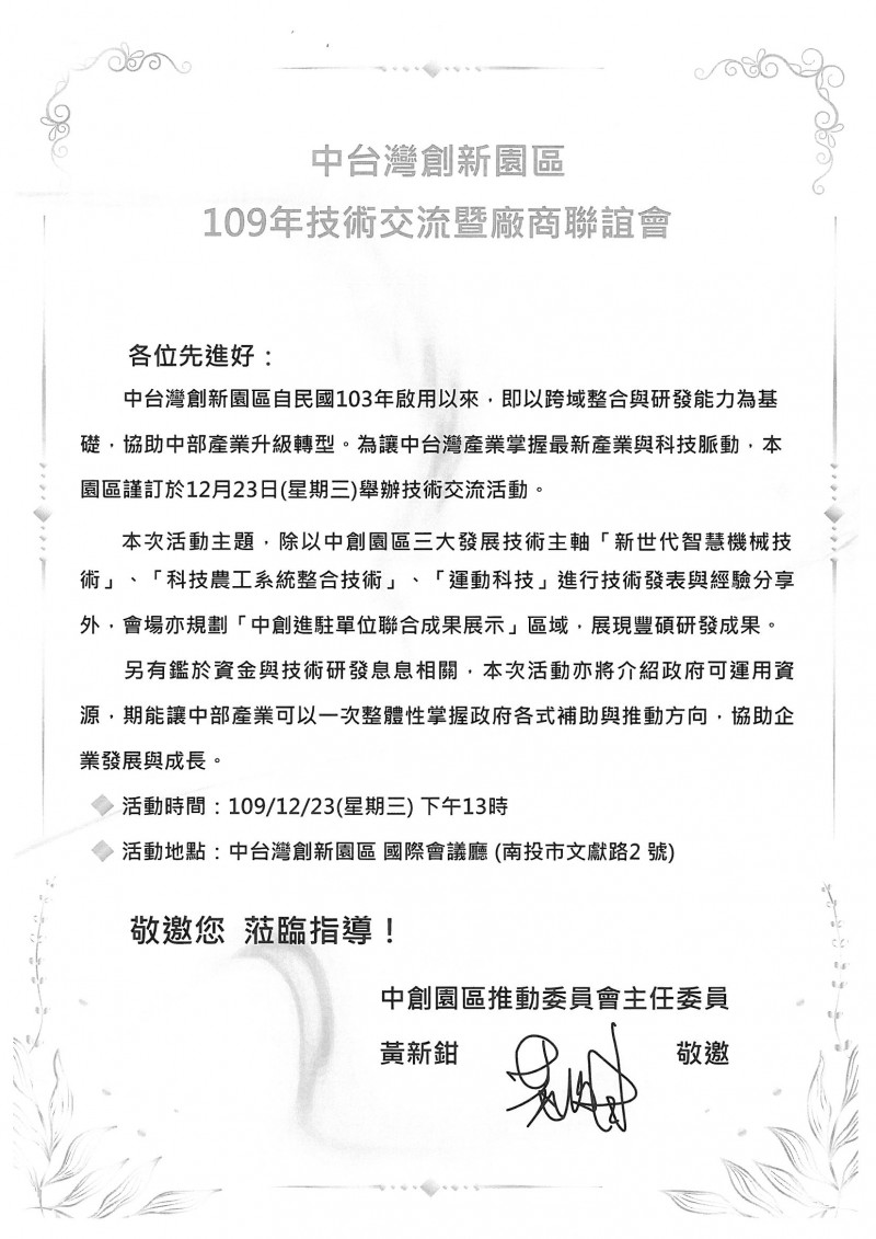 工研院109年12月23日「109年技術交流暨廠商聯誼會」